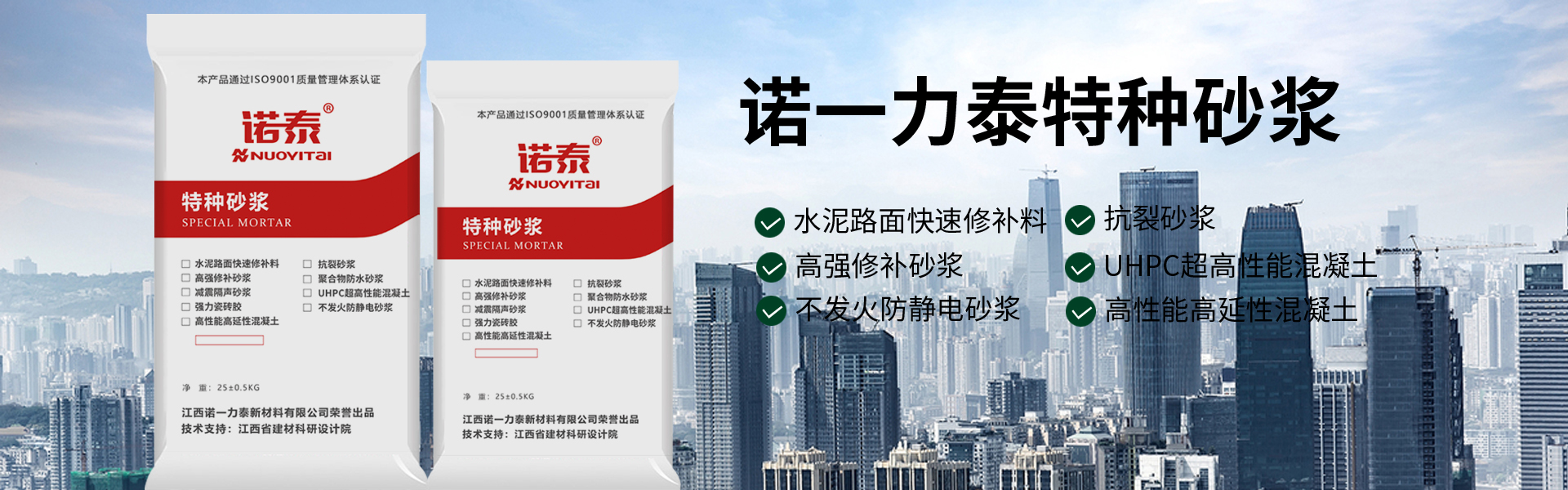 江西諾一力泰新材料有限公司位于江西宜春奉新縣,是專業從事灌漿料、水泥路面修補砂漿抗裂砂漿防水砂漿、保溫砂漿、隔聲砂漿、粘結砂漿等砂漿系列產品生產銷售的廠家。